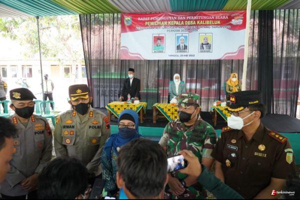Dandim 0736/Batang Letkol Arh Yan Eka Putra bersama Kapolres Batang M.Irwan Susanto Dampingi PJ Bupati Batang Lani Dwi Rejeki meninjau secara langsung pelaksanaan Pemilihan Kepala Desa Serentak Tahun 2022 Kab Batang, Minggu (29/5/2022).