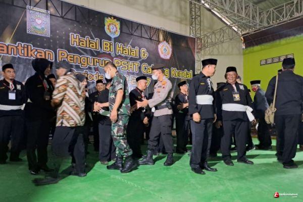 Kapolsek Gemuh IPTU Muhammad Yusuf bersama anggota melaksanakan pengamanan halal bihalal dan pelantikan Pengurus Setia Hati Terate Kabupaten Kendal ( PSHT P16 ) periode 2022-2027 di Gedung Serbaguna Desa Jenarsari Kecamatan Gemuh Kendal, Minggu (29/5/2022).