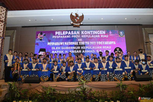 BATAM - Gubernur Kepulauan Riau H. Ansar Ahmad melepas kontingen Pesta Paduan Suara Gerejawi (Pesparawi) Provinsi Kepri di Hotel Best Western Panbil, Batam, Selasa (31/05). Pesparawi Kontingen Kepulauan Riau akan bertanding dalam gelaran Pesparawi Nasional ke-XIII Tahun 2022 di kota Yogyakarta pada 19-26 Juni mendatang.