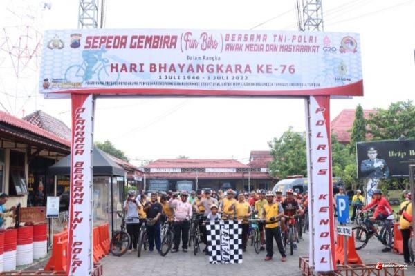 Dalam rangka memperingati HUT Bhayangkara Polri ke-76, Polres Kendal menggelar acara Fun Bike Sepeda Gembira Bersama TNI - POLRI, masyarakat dan media di Mapolres Kendal, Jl. Soekarno-Hatta Kendal, Minggu (19/6/2022).