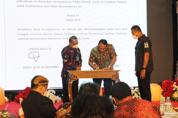 Dalam acara tersebut Wali Kota Tegal, H. Dedy Yon Supriyono menandatangani kerjasama (MoU) dengan Kepala Kantor Wilayah Kemenkuham RI Wilayah Jawa Tengah.