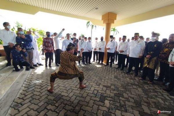 Selanjutnya, acara penyambutan Menko Airlangga dilanjutkan dengan tari persembahan sekapur sirih. Gubernur Ansar bersama Ketua BP Batam Muhammad Rudi dan Pangkogabwilhan I Laksamana Madya TNI Muhammad Ali juga turut prosesi pemakaian tanjak kepada Airlangga Hartarto oleh Ketua Rukun Khazanah Warisan Kota Batam H. Makmur Ismail.