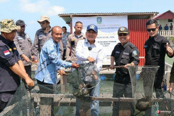 Taba Iskandar Wakili Gubernur Ansar Panen Ikan Kerapu Cantang di Pulau Akar