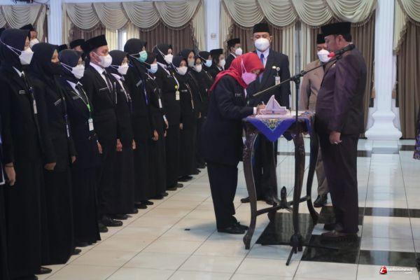 Acara pelantikan Pj. Sekda dilaksanakan bersama dengan Pelantikan dan Pengambilan Sumpah 68 Pegawai formasi CPNS 2018 dan 2019 dalam Jabatan Fungsional Guru di Lingkungan Pemerintah Kota Tegal.