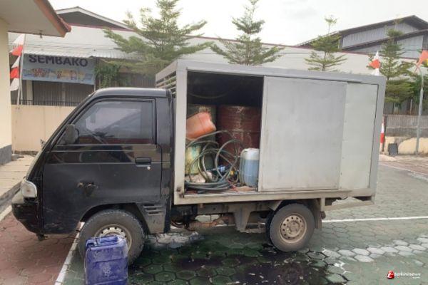 Dari gudang penyimpanan milik tersangka diamankan barang bukti berupa satu unit KBM Suzuki Carry pick up No pol H 1807 SM, cairan kondisat 300 lt, empat kaleng pewarna merk Coloursea UK 250 gr, satu drigen UK 20 lt berisikan Pertalite murni, satu liter Pertalite oplosan, satu pompa penyedot, tujuh drigen UK 200 lt dan empat drigen UK 20 lt.