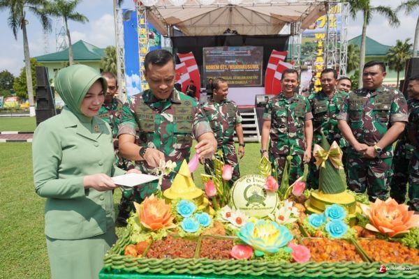 Tasyakuran HUT Ke-61 Korem 071/Wijayakusuma ditandai dengan pemotongan tumpeng oleh Danrem 071/Wijayakusuma Kolonel Inf Yudha Airlangga, S.E, didampingi Ketua Persit Kartika Chandra Kirana Koorcab Rem 071 PD IV/Diponegoro Ny. Natania Yudha Airlangga. Potongan tumpeng tersebut, selanjutnya diberikan kepada Mayor Chk Permana, S.H sebagai perwakilan prajurit yang memasuki masa pensiun.