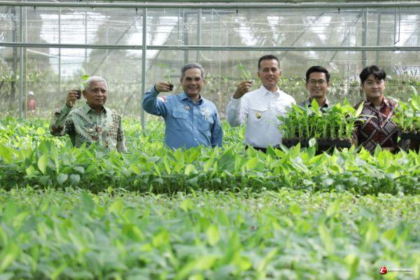 Setelah usai melaksanakan serangkaian kegiatan di Pendopo Rumah Dinas Bupati Asahan Wamentan bersama Bupati Asahan, Wakil Bupati Asahan dan Forkopimda Kabupaten Asahan beserta beberapa OPD mengunjungi PT. Hijau Surya Biotechindo yang berada di Kelurahan Sei Renggas Kecamatan Kota Kisaran Barat untuk melihat secara langsung pembibitan pisang barangan.(fra)