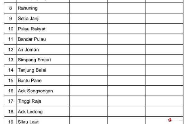 ASAHAN - Rekapitulasi Harian Covid – 19 per Kecamatan untuk hari ini sebagaimana data surveilans dari seluruh Puskesmas di wilayah Kabupaten Asahan yang di kelola Dinas Kesehatan tidak ada seorang warga terkonfirmasi positif, tidak ada yang sembuh dan tidak ada yang meninggal dunia akibat Covid – 19 Rabu (05/10/2022).