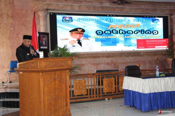‘’Media massa menjadi sarana strategis dalam penyampaian informasi secara masif, terutama dalam saluran komunikasi politik. Sehingga peran media sangat signifikan untuk menegakkan negara yang berdemokrasi, salah satunya sebagai corong pemerintah kepada masyarakat terkait kebijakan maupun informasi pemerintahan,’’ ujar Wali Kota saat membuka Media Gathering yang dilaksanakan di Gedung Adipura Komplek Balai Kota Tegal, Kamis (27/10) siang.