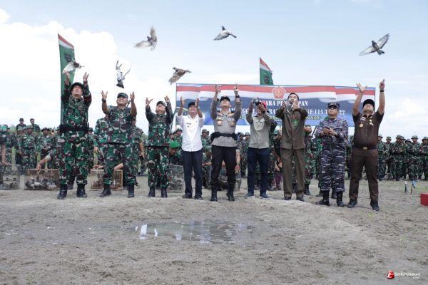 Sementara Bupati Asahan H. Surya, BSc dalam sambutannya menyampaikan bahwa, atas nama Pemerintah Kabupaten Asahan, dirinya menyambut baik dan mendukung pelaksanaan TMMD di Kabupaten Asahan sebagai salah satu upaya percepatan implementasi dari program-program prioritas yang tertuang dalam RPJMD Kabupaten Asahan Tahun 2021-2026 khususnya program infrastruktur kuat, program ekonomi mandiri, dan program Asahan sehat. “atas nama Pemerintah dan masyarakat Kabupaten Asahan, saya mengucapkan terima kasih kepada TNI yang telah bersedia membangun bersama rakyat mendukung program Pemerintah Kabupaten Asahan. Saya juga mengajak kita semua untuk senantiasa memberikan dukungan demi kelancaran pelaksanaan kegiatan TMMD ini, dan secara khusus kepada Pemerintah Desa dan masyarakat saya sampaikan mari kita sukseskan bersama kegiatan TMMD ini sehingga berjalan dengan baik dan bermanfaat bagi seluruh masyarakat”, tutup Bupati. Kegiatan tersebut diakhiri dengan pemukulan gong oleh Pangdam I/BB didampingi oleh Danrem dan Forkopimda Kabupaten Asahan dan pelepasan burung merpati ke alam bebas.(Humas)