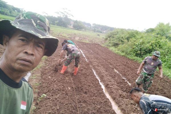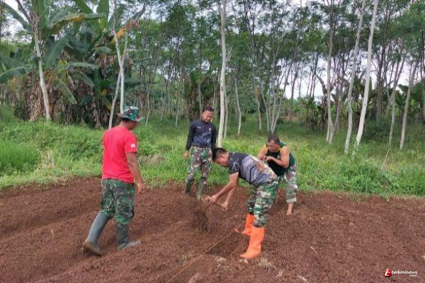 Anggota Kodim 0736/Batang bersama masyarakat menyiapkan olah tanah yang dalam waktu dekat akan digunakan untuk ditanami cabe merah secara perdana yang akan dihadiri oleh Forkopimda Kab. Batang.