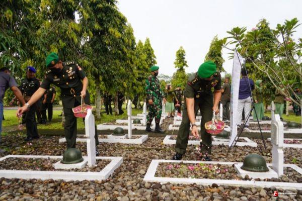 Menjelang diperingatinya Hari Juang Kartika TNI AD Ke-77 Tahun 2022, Korem 071/Wijayakusuma Ziarah Makam Pahlawan di TMP Tanjung Nirwana, Purwokerto, Banyumas. Rabu (14/12/2022).