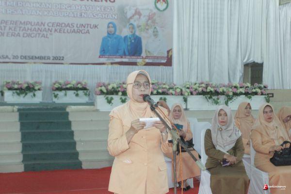 Ketua DWP Kab. Asahan Hj. Derlina John Hardi dalam sambutannya mengatakan Dharma Wanita adalah sebuah organisasi yang beranggotakan istri Pegawai Negeri Sipil (PNS) dengan tujuan utama dari pendirian Dharma Wanita adalah meningkatkan kualitas sumber daya anggota keluarga PNS untuk mencapai kesejahteraan nasional. Karena dirinya berharap melalui kegiatan ini DWP Kab. Asahan dapat memanfaatkannya untuk saling berbagi informasi dan pengetahuan khususnya dalam meningkatkan kualitas keluarga di lingkungan masing – masing. “saya berharap seluruh peserta dapat mengikuti kegiatan ini dengan sebaik-baiknya dan saya juga sampaikan, bahwa pemenang lomba kali ini akan diumumkan pada tanggal 27 Desember 2022 yang bertepatan dengan peringatan Hari Ibu”, ujar Ketua DWP Kab. Asahan.