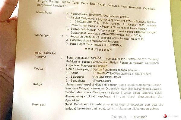 MAKASSAR - Anggota DPRD kota Makassar Rachmat Taqwa Quraisy (RTQ) ditunjuk sebagai Pelaksana tugas (Plt) Ketua Badan pengurus Pusat (BPP) Kerukunan Organisasi Masyarakat Pangkep (Kompak) Sulsel.