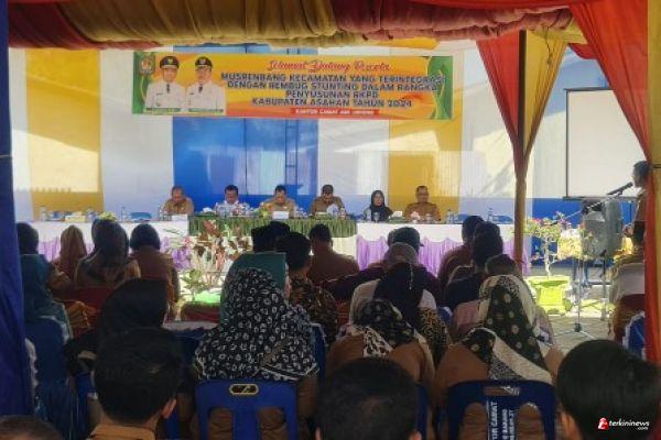 ASAHAN - Bupati Asahan diwakili Asisten Ekonomi Pembangunan Drs. Muhilli Lubis membuka Musyawarah Perencanaan Pembangunan (Musrenbang) Rencana Kerja Pembangunan Daerah (RKPD) Tingkat Kecamatan Aek Ledong Tahun 2024 yang terintegrasi dengan Rembuk Stunting, Selasa (14/02/2023).
