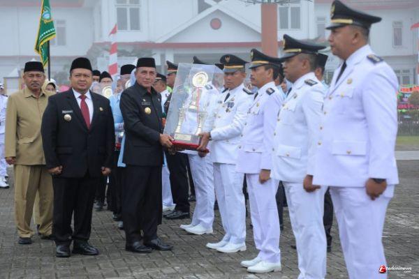 Atas keberhasilannya Kecamatan Air Batu menerima penghargaan dari Gubernur Sumatera Utara (Gubsu) Edy Rahmayadi di Halaman Parade Kantor Bupati Tapanuli Selatan.