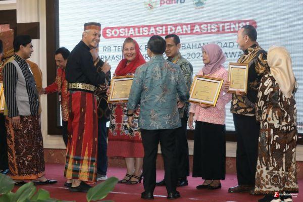 Penyerahan penghargaan berlangsung acara pembukaan Sosialisasi RB Tematik dan Perubahan Road Map Reformasi Birokrasi di Jawa Tengah 2020- 2024 yang diselenggarakan di Gedung Gradhika Bhakti Praja Kamis (30/3) pagi.