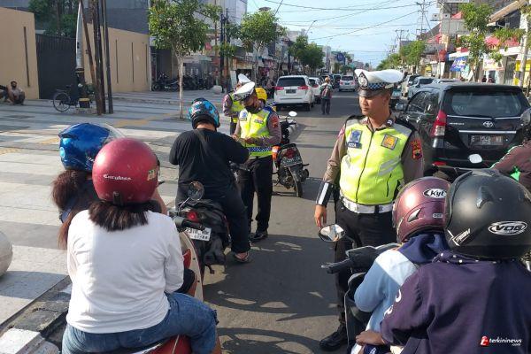 TEGAL - Satuan Lalu Lintas (Satlantas) Polres Tegal Kota menggelar razia stasioner di Jalan Ahmad Yani Kota Tegal, Rabu (29/3/2023) sore.