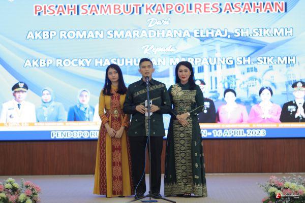 Bupati Asahan dalam pidatonya mengucapkan terimakasih yang setinggi-tingginya kepada AKBP Roman Smaradhana Elhaj atas pengabdian yang telah diberikan selama ini serta memberikan masukan yang positif untuk kemajuan Kabupaten Asahan. Bupati juga berharap agar jalinan kerjasama dan silaturahmi yang telah terbina dengan baik selama ini dapat terus berlanjut begitu juga kepada ibu yang telah mendampingi selama bertugas di Kabupaten Asahan, dimana ibu turut aktif dalam kegiatan serta memberikan sumbangan pemikiran dan lainnya, untuk itu kami menyampaikan terimakasih yang sebesar-besarnya.