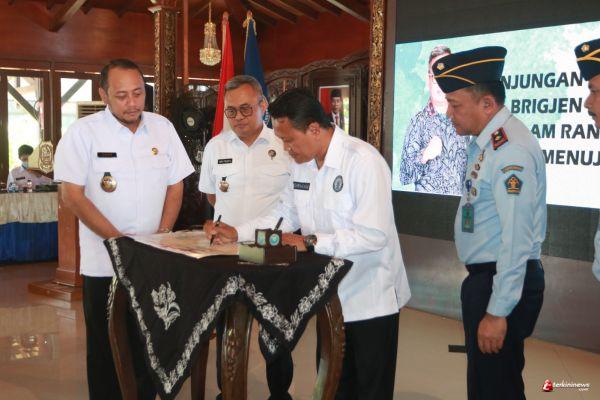 TEGAL - Tiga Kepala Lembaga Pemasyarakatan (Lapas), yang terdiri dari Kepala Lapas Kota Tegal, Kabupaten Tegal dan Kabupaten Brebes menandatangani Komitmen Lapas Bersih Narkoba (Bersinar) dengan Badan Narkotika Nasional (BNN) Tegal.