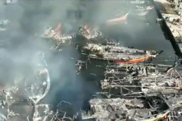 Kobaran api yang sudah meluluh lantakan puluhan kapal, sudah tidak terlihat lagi. Namun sejumlah petugas tim gabungan pemadam kebakaran masih terlihat melakukan upaya pemadaman api. Hal ini untuk memastikan titik api tidak muncul kembali.