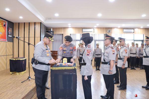 BREBES - Kapolres Brebes Polda Jawa Tengah AKBP Guntur Muhammad Tariq memimpin Upacara Serah Terima Jabatan (Sertijab) Kapolsek dan Kasat dijajaranya.