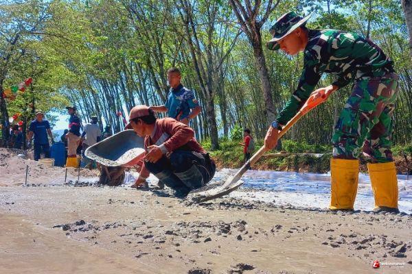 Seperti tampak pada Rabu (27/09/2023). Warga Purwogondo tampak kompak sedang membantu pengerjaan jalan yang digelar Kodim 0715/Kendal.