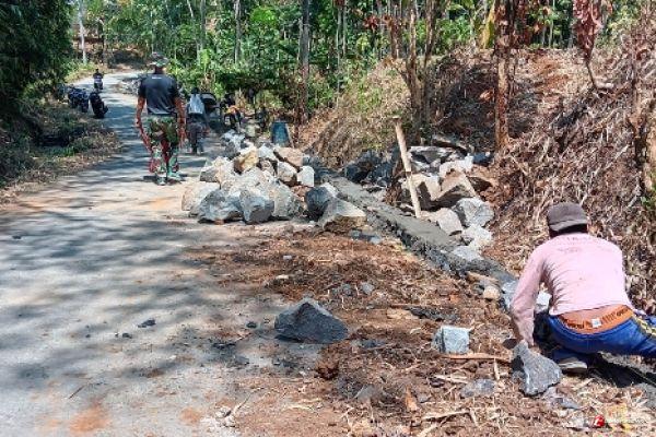 Pembangunan Talud Terus di Kerjakan Warga Bersama Anggota Satgas TMMD