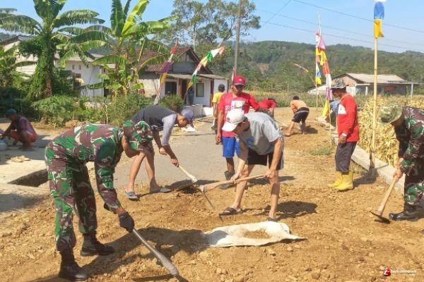 "Pembangunan jalan rabat beton di Dusun Purwogondo memiliki volume 1.200 meter melaksanakan penimbunan dasar badan jalan untuk selanjutnya akan di cor. "kata Sertu Suroso.