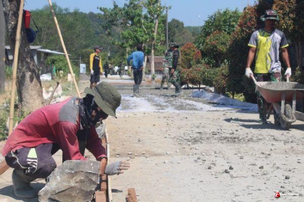 Seperti halnya yang dilakukan Maryanto (37) warga RT 3/7 Dusun Kaligading, bersama anggota Satgas TMMD yang berasal dari Yon Zipur, Kopda Lamijan. Untuk memasang begisting yang akan digunakan sebagai batas pembuatan jalan juga dilakukan bersama.
