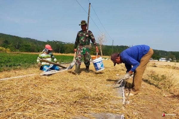 Warga Manfaatkan Batang Padi Pada Pengecoran Jalan TMMD