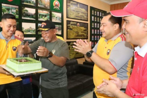 Kejutan HUT TNI, Kapolres Brebes Bawakan Kue Ulang Tahun Saat Olah Raga Bersama