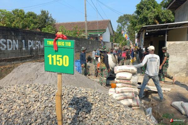 KENDAL - Satuan Tugas (Satgas) Program Tentara Manunggal Membangun Desa (TMMD) Ke-118 Kodim 0715/Kendal kebut pekerjaan menjelang pekan terakhir di Desa Purwogondo Kecamatan Boja Kendal. Selasa (10/10/23).