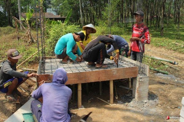 Dari pemantauan di lapangan, pengerjaan pembangunan Pos Kamling yang di kerjakan oleh Satgas TMMD bersama masyarakat Desa Purwogondo saat ini pada tahap lanjutan pemasangan pondasi.