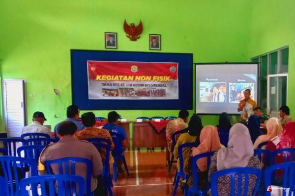 Kendal - Satgas TMMD ke-118 Kodim 0715/Kendal bersama BNN Kabupaten Kendal menggelar giat penyuluhan tentang pencegahan Narkoba kepada masyarakat di Balaidesa salamsari, Kecamatan Boja, Kabupaten Kendal,Selasa (03/10/2023).