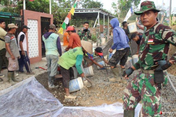 KENDAL - Program TNI Manunggal Membangun Desa (TMMD) Reguler 118 Tahun 2023 Kodim 0715/Kendal Desa Purwogondo dalam kegiatan Pengecoran Rabat Beton.Kamis (12/10/2023)