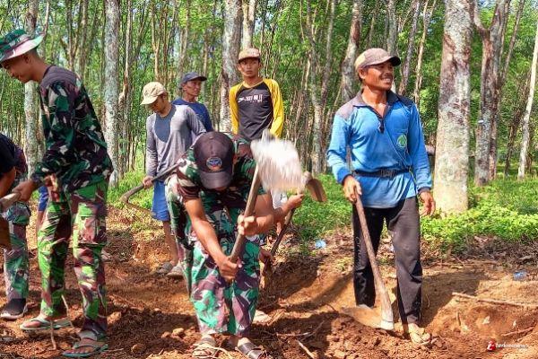 Kendal - Semangat Satgas TMMD Reguler Ke-118 Kodim 0715/Kendal Bersama Warga terus ditunjukan. Penggalian tanah berem jalan di Desa Purwogondo terus dilakukan untuk mendongkrak semangat Satgas TMMD dan warga desa setempat dalam membuat finishing pengerjaan jalan.Selasa (17/10/23).
