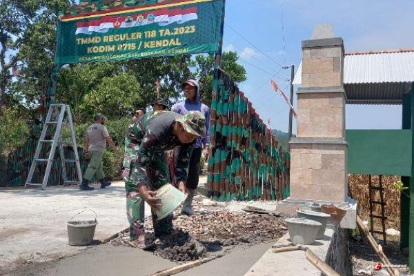 Kendal - Kodim 0715/Kendal bangun gapura sebagai tanda TMMD pernah dilaksanakan di Desa Purwogondo Kecamatan Boja Kabupaten Kendal. Rabu (18/10/23).