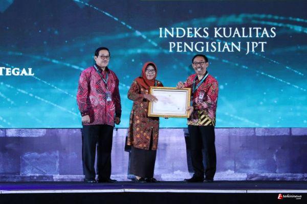 YOGYAKARTA – Pemkab Tegal berhasil meraih dua penghargaan sekaligus dari Komisi Aparatur Sipil Negara (KASN) untuk kategori sistem merit dengan predikat baik dan manajemen talenta pada pengisian jabatan pimpinan tinggi (JPT) dengan predikat sangat baik. Bupati Tegal Umi Azizah hadir secara langsung menerima penghargaan bergengsi bidang reformasi birokrasi ini pada Anugerah Meritokrasi yang diselenggarakan di Hotel Pakuwon, Yogyakarta, Kamis (07/12/2023).