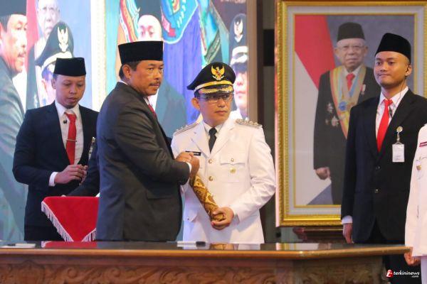 SEMARANG – Penjabat (Pj) Gubernur Jawa Tengah Nana Sudjana melantik Agustyarsyah menjadi Pj Bupati Tegal di Gedung Gradhika Bhakti Praja, Kota Semarang, Rabu (10/01/2024). Selain mengawal pelaksanaan pemilu dan pilkada serentak tahun 2024 supaya berjalan aman dan damai, Nana juga meminta penjabat bupati mampu bekerja mengendalikan inflasi, menanggulangi kemiskinan, menurunkan tingkat pengangguran terbuka, dan menangani stunting.