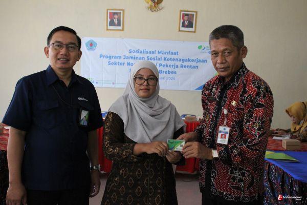 BREBES - Sebanyak 7.500 Warga Brebes pekerja non formal mendapat jaminan BPJS Ketenagakerjaan, premi sebesar Rp16.800,- per bulan per orang itu dibayar Pemerintah Kabupaten Brebes. Kartu BPJS Ketenagakerjaan untuk tahun 2024 telah diserahkan kepada warga peserta melalui Kasie Kesejahteraan Sosial (Kesos) kecamatan masing-masing di sela Sosialisasi Manfaat Program Jaminan Sosial Ketenagakerjaan Sektor Non formal’Pekerja Rentan Kabupaten Brebes, di Kantor Dinas Sosial, Selasa (27/2/2024)