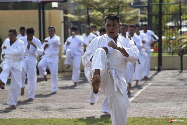 "Semua anggota yang berpangkat mulai Bharada sampai Inspektur Polisi Satu (Iptu) wajib mengikuti latihan beladiri. Apalagi bagi mereka yang akan melaksanakan ujian kenaikan pangkat (UKP),"ujar Kabag SDM.