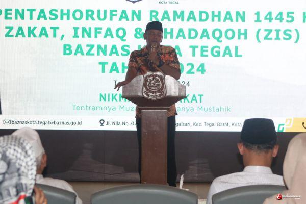 Bantuan diserahkan secara simbolis oleh Wali Kota Tegal, H. Dedy Yon Supriyono yang didampingi Ketua Baznas Kota Tegal, Harun Abdi Manaf, Kepala Kantor Kemenag Kota Tegal, Ahmad Muhdzir serta Ketua MUI Kota Tegal, KH Sobirin Ali di Acara Pentashorufan Ramadan 1445 H Zakat, Infaq dan Shodaqoh (ZIS) Baznas Kota Tegal Tahun 2024 yang berlangsung di Pendopo Ki Gede Sebayu, Komplek Balai Kota Tegal, Rabu (20/3) sore.