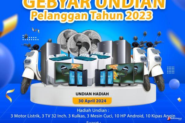 Lanjut Agus, di Hari Ulang Tahun ke-32 sekaligus sebagai bentuk penghargaan kepada pelanggan yang pembayaran rekening tiap bulannya lancar dan tidak pernah nunggak di tahun 2023 akan diberikan hadiah. Hadiah yang disediakan sebanyak 32 item yakni: 3 Unit Motor Listrik, 3 TV 32 Inch, 3 Mesin Cuci 2 tabung, 3 Kulkas 1 pintu, 10 Hp Android, dan 10 Kipas angin.