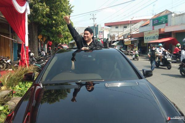 TEGAL - Bukti keseriusan Bacalon Wakil Wali Kota Tegal R. Agung Mulyasanjaya beserta rombongan resmi mengembalikan berkas formulir pendaftaran sebagai Bacalon Wakil Wali Kota Tegal di Kantor DPC PDI-P Kota Tegal, Jalan Setiabudi, Kota Tegal, Minggu (19/5/2024).