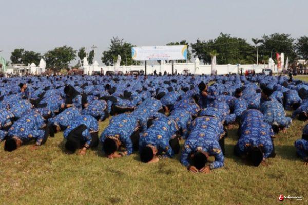 BREBES - Pj Bupati Brebes Iwanuddin Iskandar menyerahkan Surat Keputusan (SK) pengangkatan kepada 2.419 orang Pegawai Pemerintah dengan Perjanjian Kerja (PPPK) Formsi 2023. Sontak, ribuan penerima SK tersebut sujud syukur setelah dilantik sebagai Aparatur Sipil Negara (ASN) PPPK di halaman Kantor Pemerintahan Terpadu (KPT) Brebes, Selasa (21/5/2024).