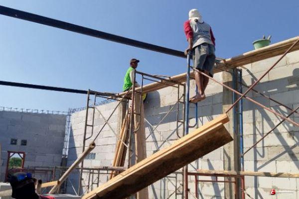 Tim teknis tukang kerjakan kembali bagian dalam dan bagian luar Balai RW. Setelah bahan material tiba di lokasi dengan penuh cekatan tim tukang mengambil dan menggunakannya sesuai kebutuhan.