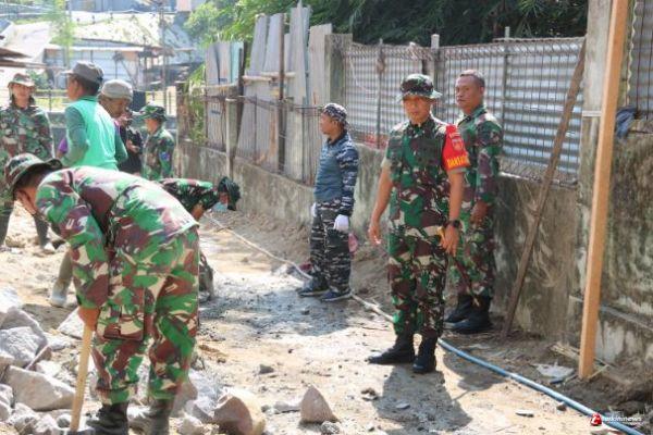 "Seperti saat ini saya cek proses pengerjaan pembangunan Talud yang merupakan salah satu sasaran fisik dalam program TMMD Reguler ke-121 Kodim 0734/Kota Yogyakarta ini" terangnya.
