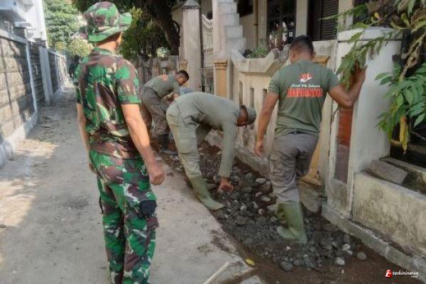 Yogyakarta - Satuan Tugas Tentara Manunggal Membangun Desa (TMMD) Reguler ke-121 bersama Polri dan masyarakat, bahu-membahu membangun Saluran Air Hujan (SAH). Proyek ini berada di gang Libra, Kelurahan Sorosutan, Kemantren Umbulharjo, Kota Yogyakarta, Minggu (28/07/2024).