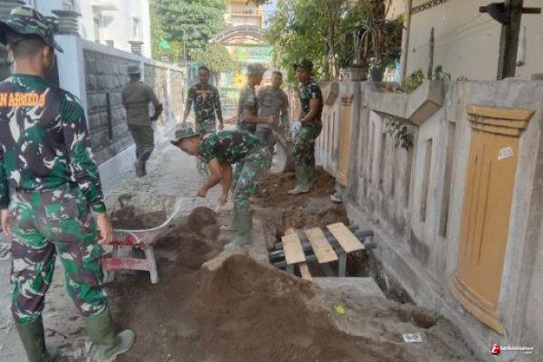 Satgas TMMD Reg Ke-121 Kodim Jogja Bersama Masyarakat Bangun Saluran Air Hujan (SAH)